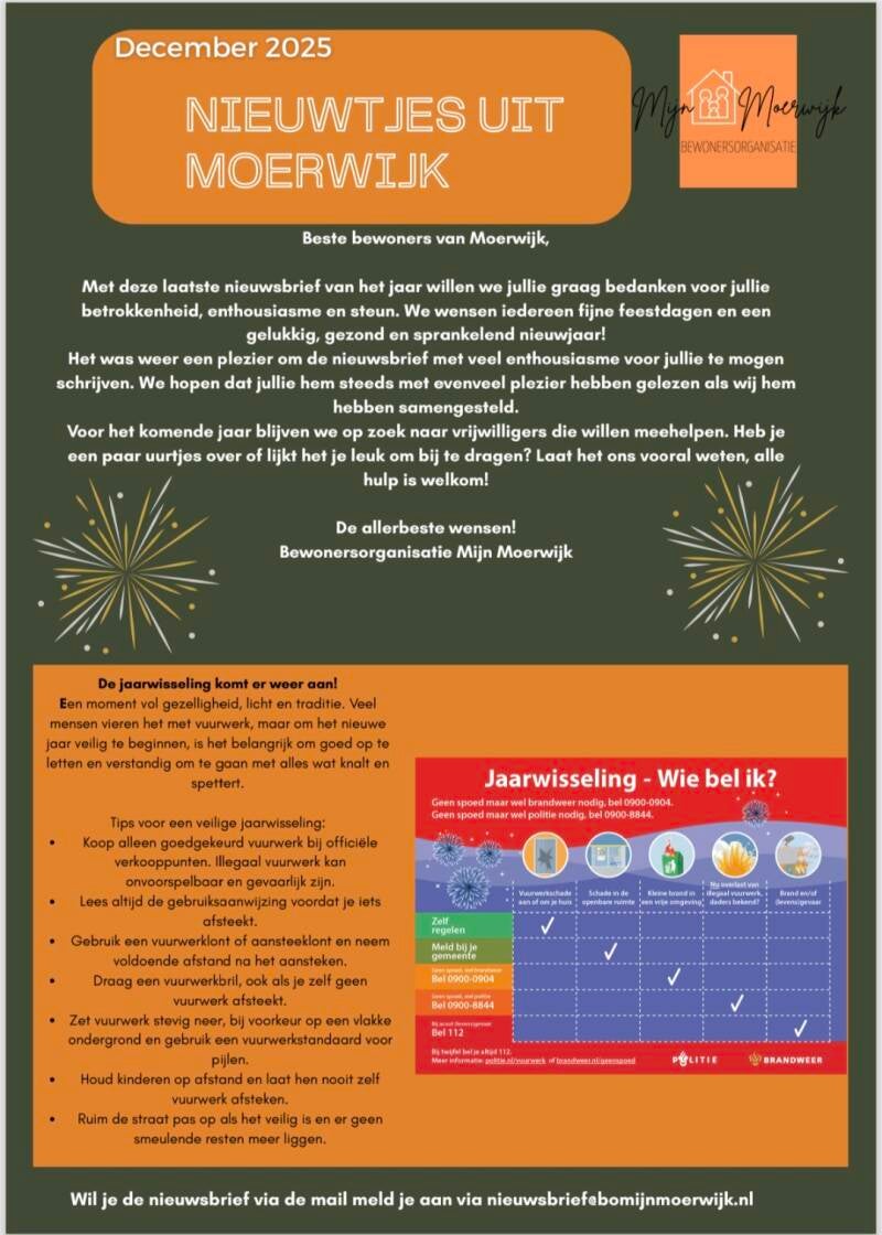 Ook in 2026 maken wij graag een nieuwsbrief voor en over Moerwijk.